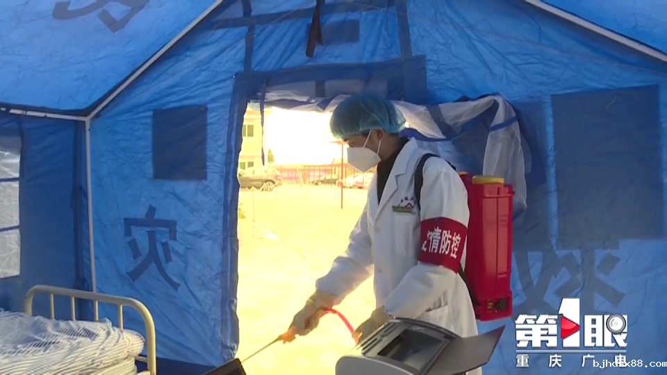 在梁平区和林镇卫生院,唐孝玲正在给临时发热门诊的帐篷消毒,从1月25日到现在,他一直住在临时帐篷里值守,已经有半个多月没有和家人见面了。