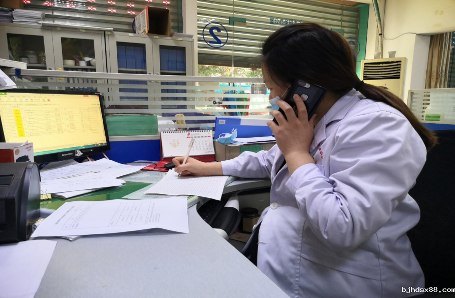 图为家庭医生杨佳佳为居民提供电话咨询服务