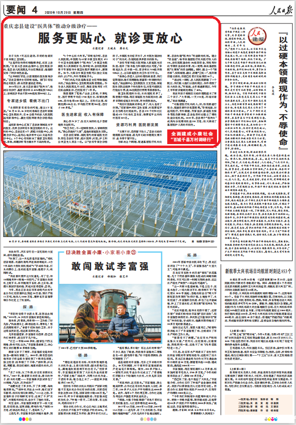 2018年以来,重庆忠县建设“医共体”,推动分级诊疗,基层首诊率从45%增长到70%以上,县域就诊率由不到80%提高到90%以上。