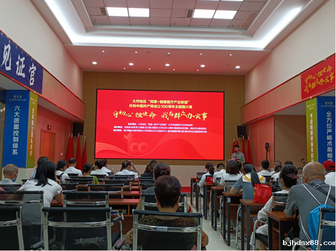 为传承和发扬伟大建党精神,开展好新时代精神文明内涵建设,促进党史学习教育不断向纵深推进,将学习成果转化为惠民、便民、利民的实实在在的举措,为建党百年华诞献礼,7月27日,大坪地区“党建+健康医疗产业联盟”以“守初心、担使命、我为群众办实事”为主题,举办健康产业联盟庆祝建党100周年主题活动。