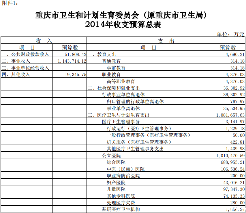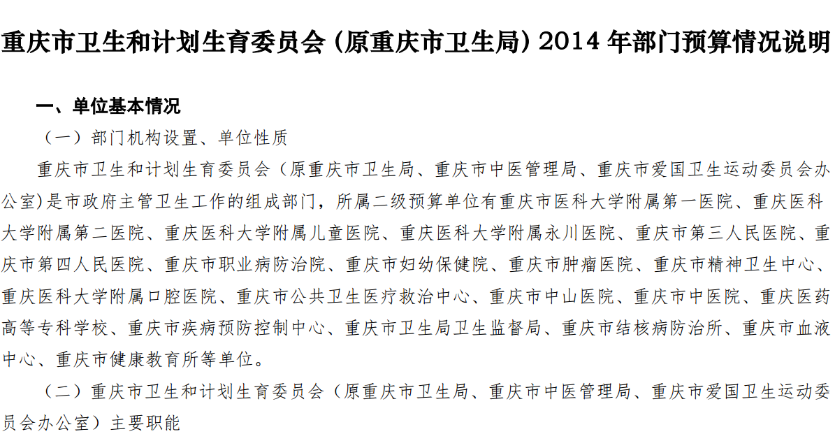 重庆市卫生和计划生育委员会(原重庆市卫生局)2014年部门预算情况说明