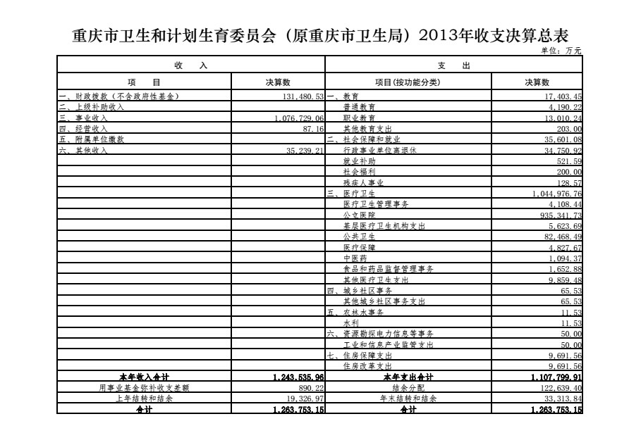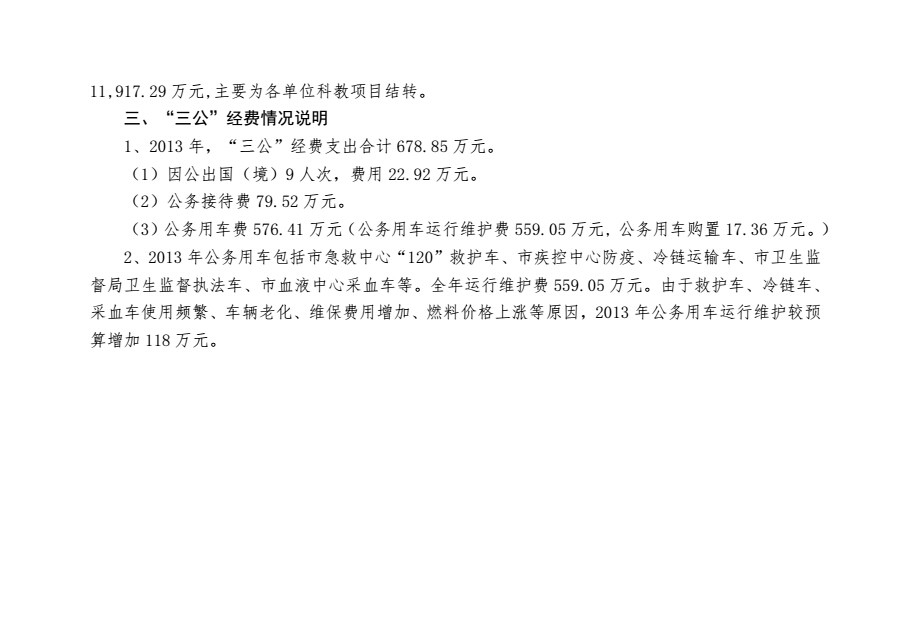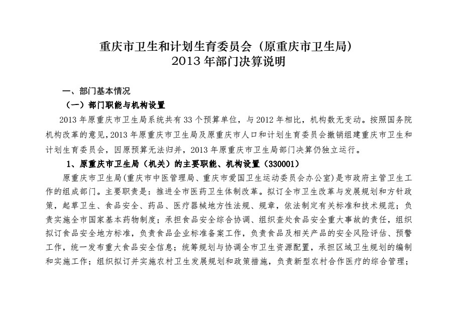 重庆市卫生和计划生育委员会(原重庆市卫生局)2013年部门决算情况说明