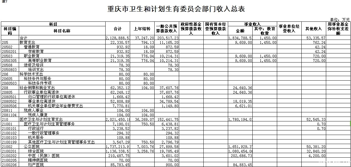 重庆市卫生和计划生育委员会2017年部门预算编制说明