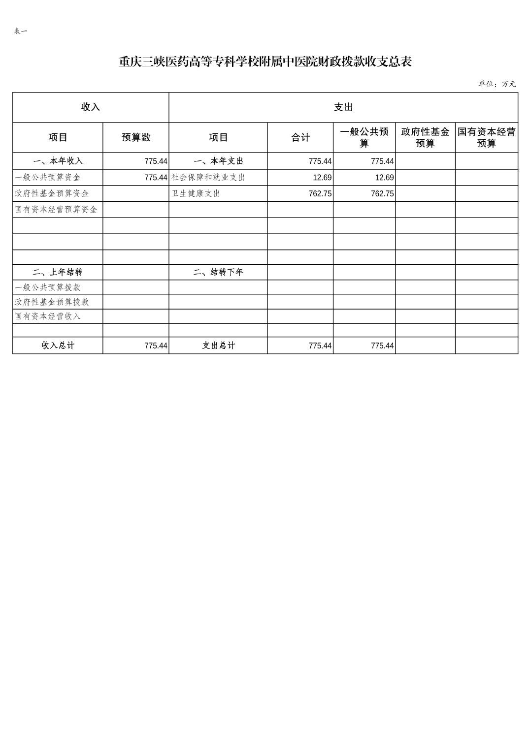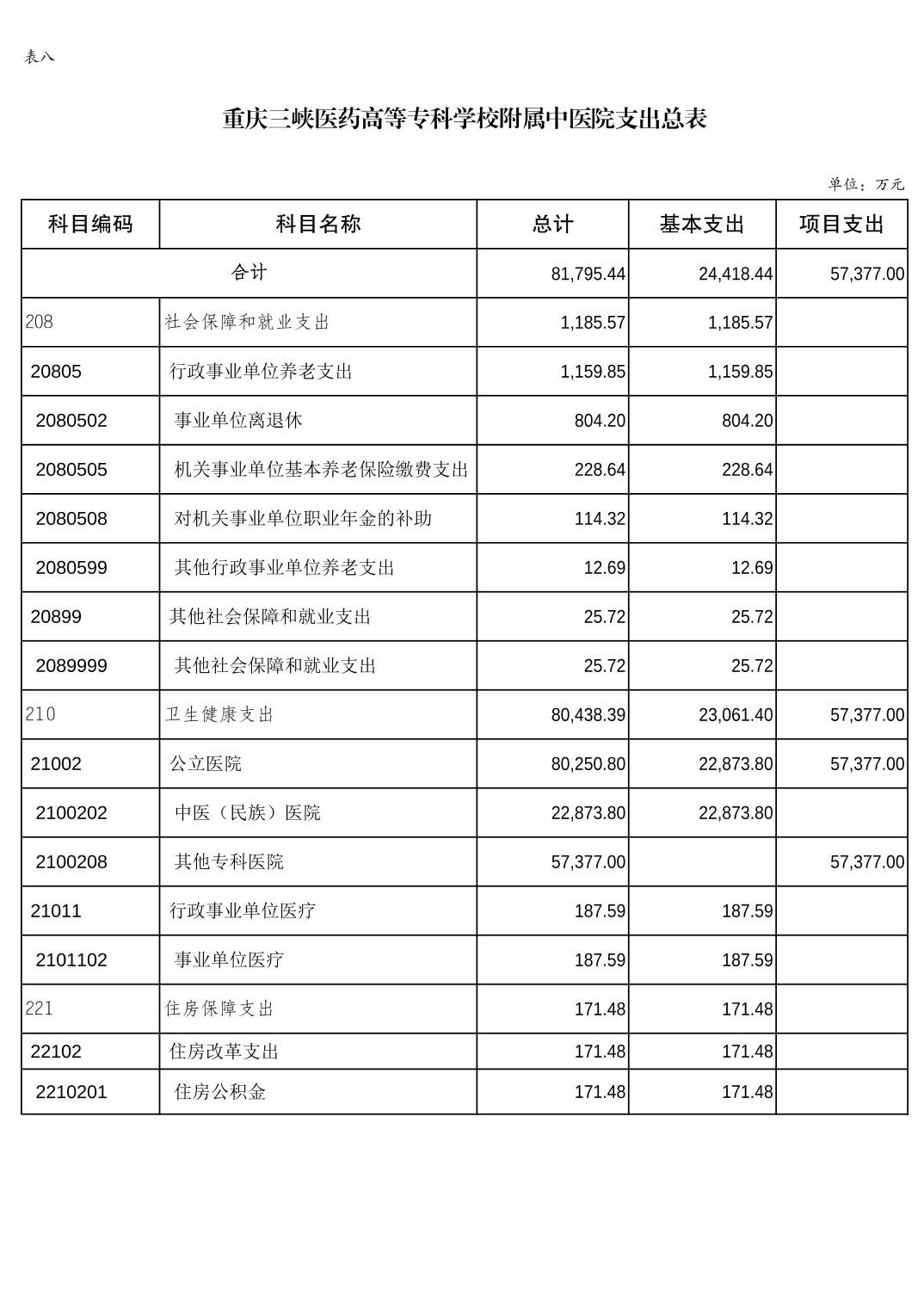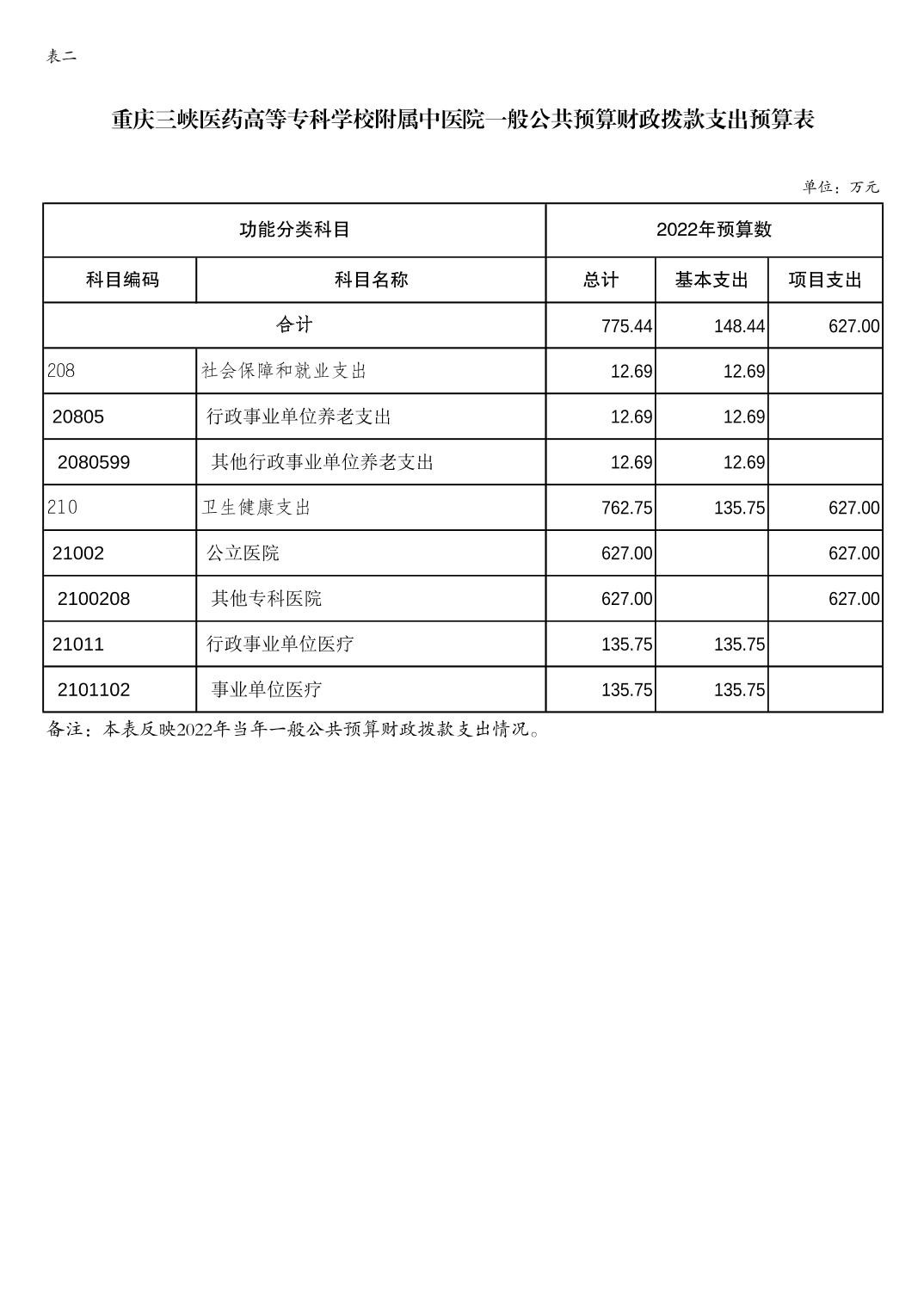 重庆三峡医药高等专科学校附属中医院2022年单位预算情况说明