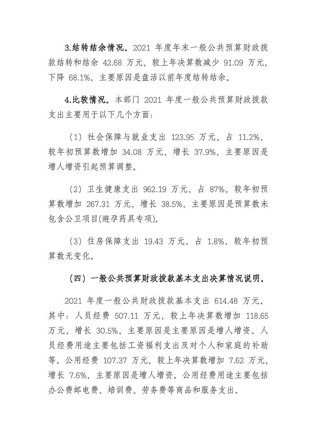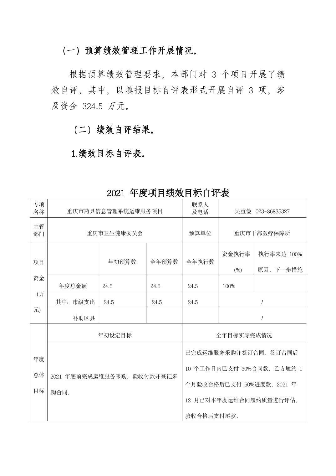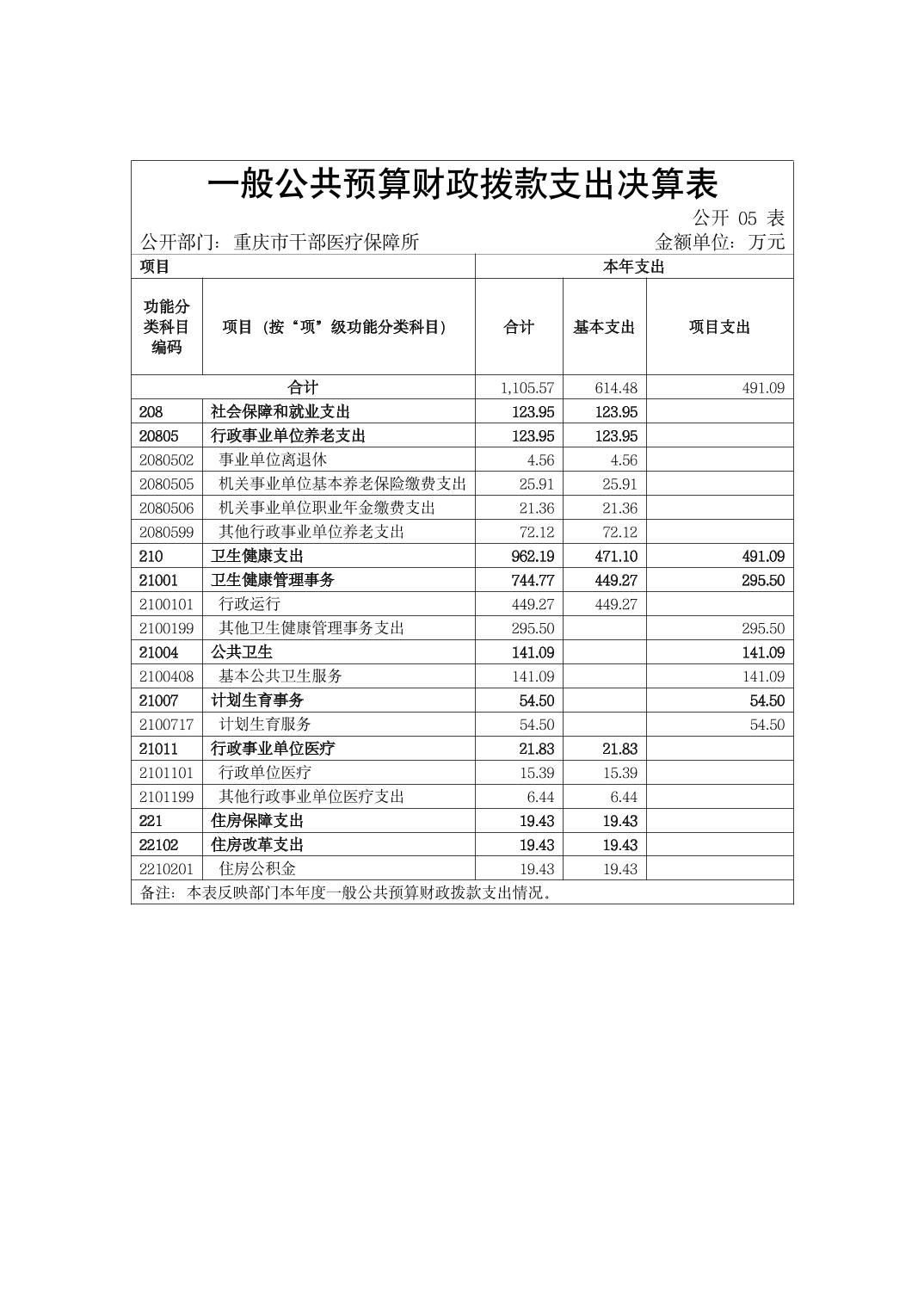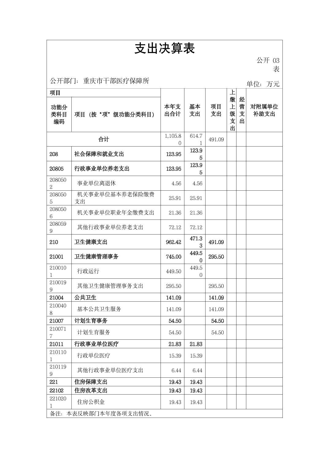 重庆市干部医疗保障所2021年度部门决算情况说明