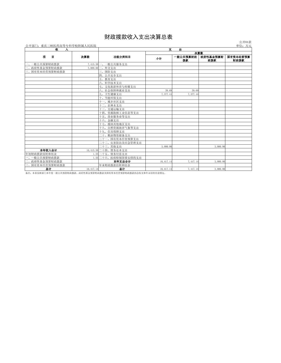 重庆三峡医药高等专科学校附属人民医院2022年度部门决算情况说明