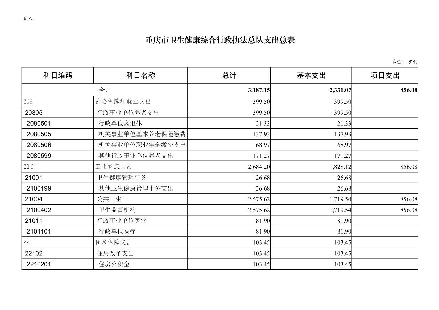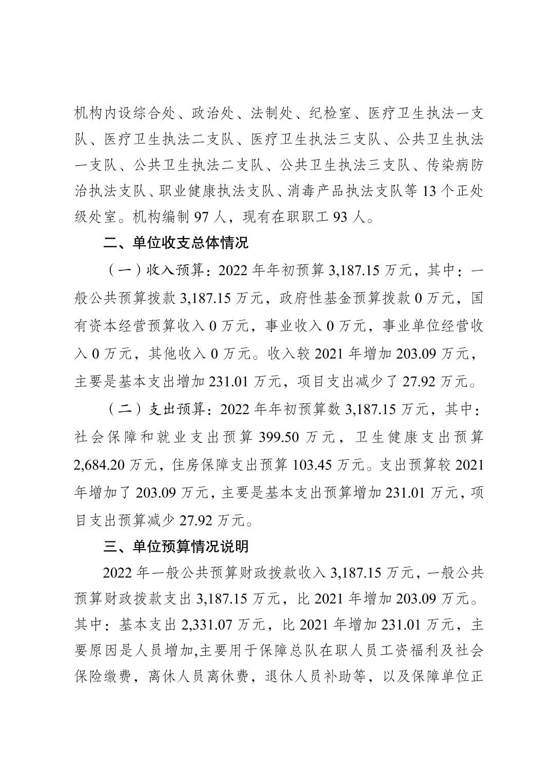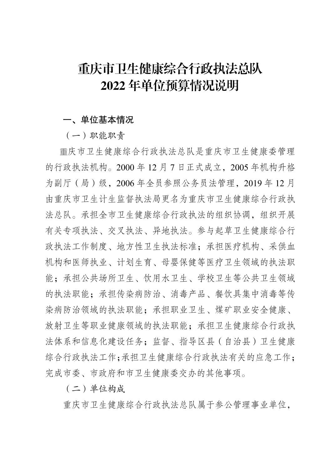 重庆市卫生健康综合行政执法总队2022年单位预算情况说明
