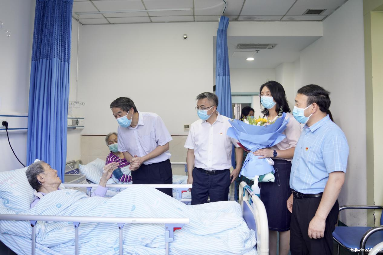 在老年病科病房,黄明会亲切看望了国医大师段亚亭,已经94岁高龄的段老因病住院,看到黄明会一行,老人家心情愉悦,脸上洋溢着幸福的笑容。黄明会为段老送上鲜花和节日祝福,感谢他为重庆中医药事业的发展和百姓健康做出的贡献,向他致以节日的问候,希望他保重身体,安享晚年。