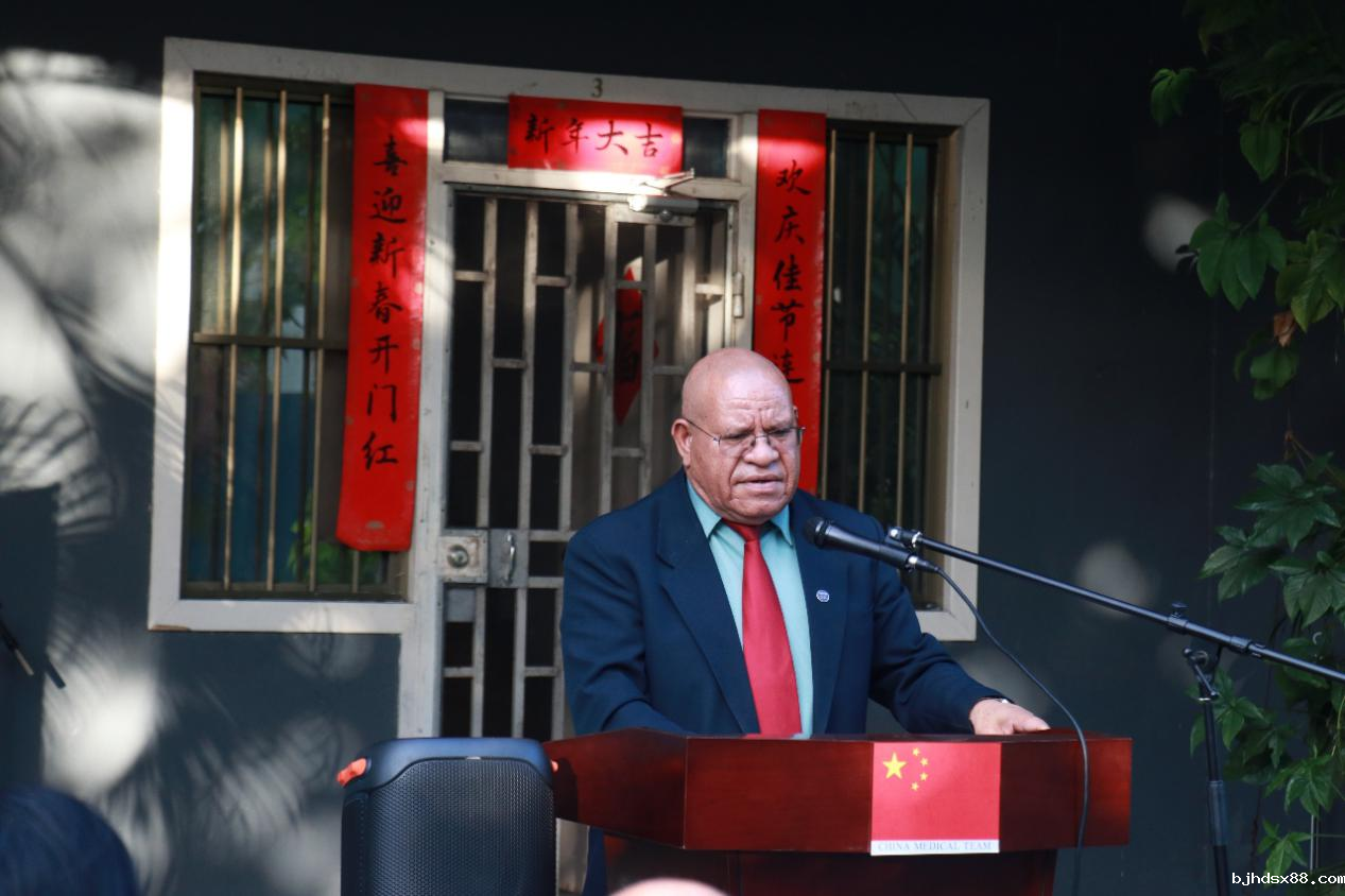 北京时间10月9日下午,第12、13批援巴布亚新几内亚(以下简称“巴新”)中国医疗队交接仪式在巴新中国医疗队驻地举行。巴新卫生部副秘书长Ken Wai、莫港总医院CEO Paki Molumi,重庆市委副书记李明清、中国驻巴新大使曾凡华、重庆市代表团其他成员,第12、13批援巴新中国医疗队全体队员,巴新相关医务人员代表、当地新闻媒体代表等参加仪式,仪式由中国驻巴新大使馆商务参赞姜成森主持。